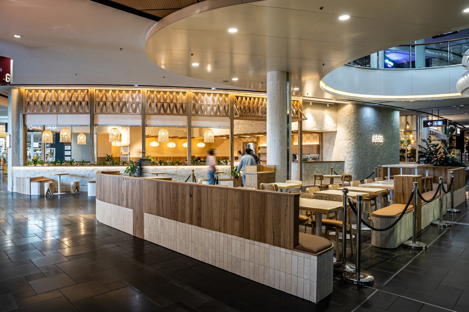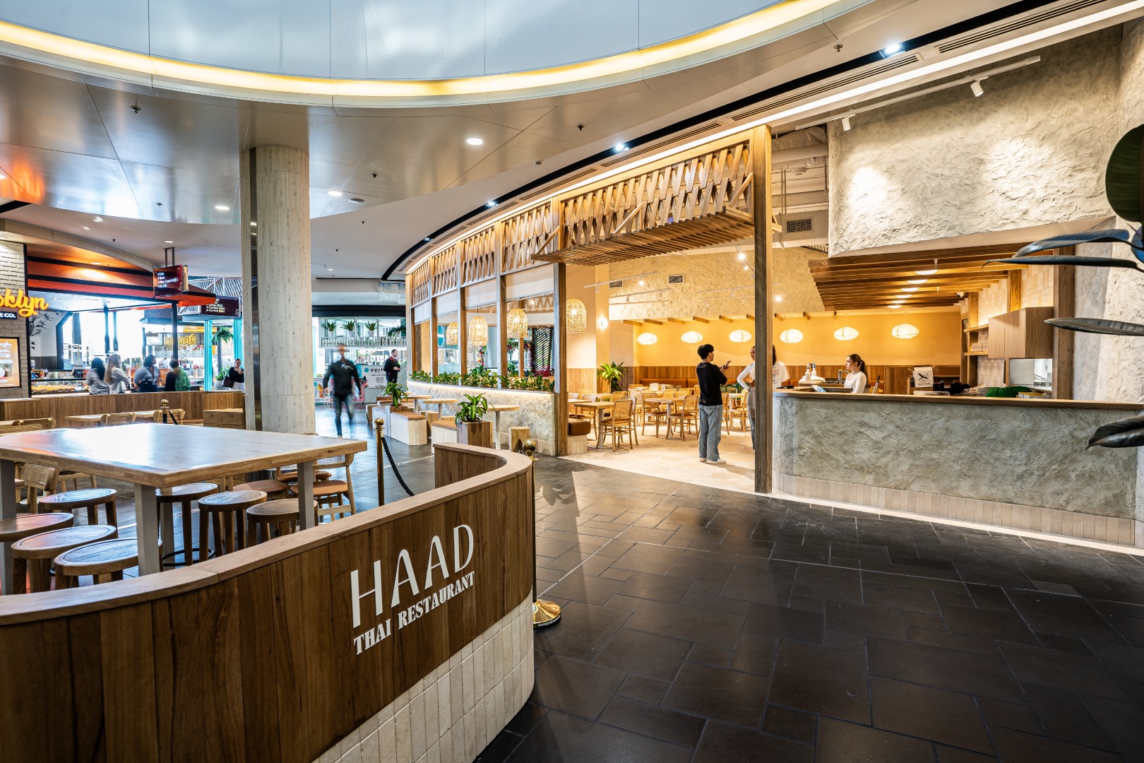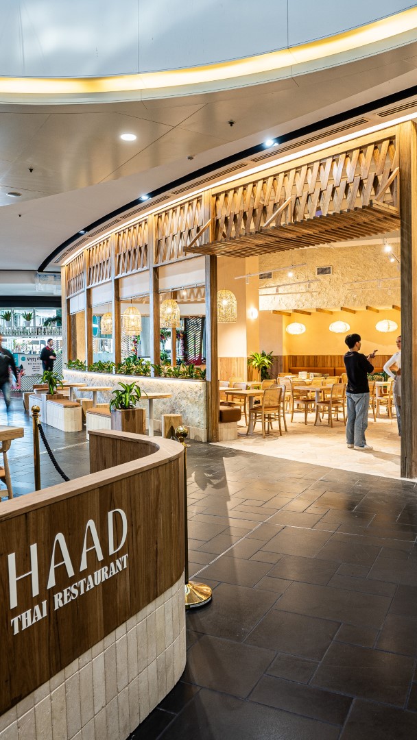 Haad Thai Carindale leans into warmth and energy, with timber textures, layered lighting, and an open layout that mirrors the rhythm of a busy restaurant service.